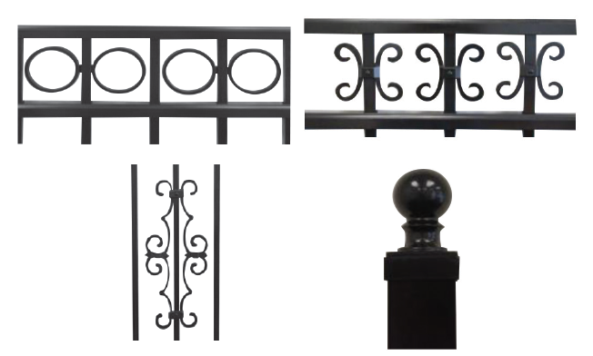 Decorative Scrolls can be added to your fence and gates to add that custom detail. Scrolls are installed at the factory and finished to match your ornamental fence.